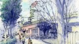 真鶴百景(82) 2025.05.23 秘密基地 通りから一本入った裏路地に石垣に囲まれて忽然と現れる玩具箱をひっくり返した様なまるで秘密基地みたいな場所石垣に咲くペラペラヨメナが風にそよぎとても綺麗でした size:A4 画用紙 油性ペン・水彩 ヴィフアール水彩紙(中目)