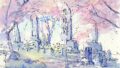 繊細かつ大胆な筆致の渓流の風景画から